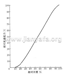 減壓閥的調(diào)節(jié)特性是由閥內(nèi)部件的結(jié)構(gòu)決定的,所謂調(diào)節(jié)特性是指流過閥門介質(zhì)的相對流通能力與閥門相對開度的關(guān)系,相對流通能力是閥門某一開度時流通能力與全開時流通能力之比,相對開度是閥門某一開度與全開度之比〔1〕。減壓閥的調(diào)節(jié)特性如圖3所示。