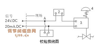 直接由調節器或手操器(對需隔離離柵的回路,還需經輸出安全保持器),輸出一個固定的20mA DC電流。經電阻箱分流后,就可以得到一個既安全又可靠的4~20mA DC信號。在現場校驗定位器時,其接線如圖所示。