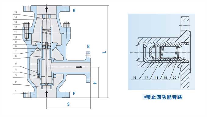 • 旁路最大工作壓差至4MPa。可以選擇增加旁路止回功能。