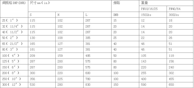 其它旁路尺寸可按要求制作;最大的旁路流量取決于最大的Kv值