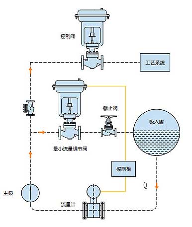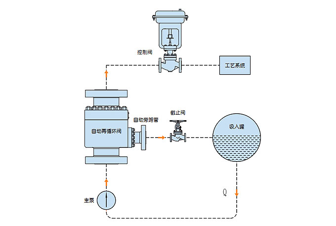 現(xiàn)代工業(yè)設備工藝過程中,要求離心泵基本上都是在變流量的狀態(tài)下工作,這就需要在工藝過程中有設置自動控制設備。然而咋離心泵在低于負荷運行時會出現(xiàn)過熱、嚴重噪聲、不穩(wěn)定和氣蝕而引起泵的損壞。這是需要一種自動再循環(huán)設備,在泵低于負荷運行時,通過旁路實現(xiàn)泵最小流量回流循環(huán)。