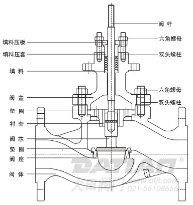 大田閥門公司引進先進技術研發生產的單座柱塞調節閥是一種頂導向單閥座調節閥,具 有結構簡單、密封性能好、流量大、使用可靠等特點。有效 而足夠的頂部導向系統克服小開度時的震動,有效使用壽命 更長。可選擇多彈簧氣動簿膜機構或電動執行機構等。